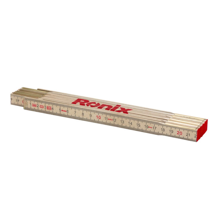 خط کش چوبی تاشو 2 متری رونیکس مدل 9715 جنس چوب توس لولا فنری نوع پوشش وارنیش