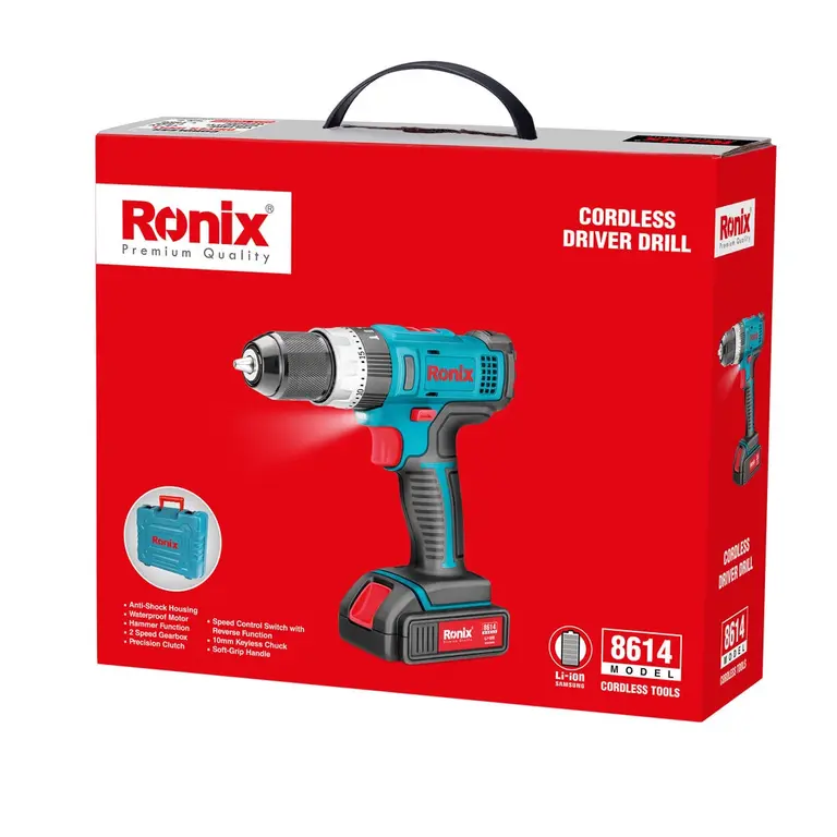 دریل پیچ گوشتی 8614 رونیکس، ابزار شارژی قدرتمند با سه عملکرد مجزای سوراخکاری، پیچکاری و سوراخکاری چکشی است. این ابزار از یک سه نظام اتوماتیک و قدرتمند 10 میلیمتری و تمام فلزی بهره میبرد و نسبت به فشار حاصل از فعالیت در سطوح متراکم مقاومت بسیار بالایی دارد.