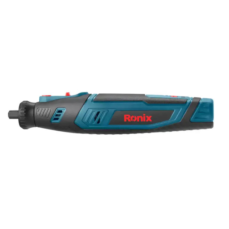 فرز مینیاتوری شارژی 3421 رونیکس مجهز به یک موتور DC 8 ولت است که سرعتی بالغ بر 30000 دور در دقیقه را تولید کرده و به ابزارگیر 3.2 میلیمتری خود منتقل میکند؛ سرعتی که در 5 حالت مختلف، در بازه 5000 تا 30000 دور در دقیقه و متناسب با سطح کار شما قابل تنظیم است.