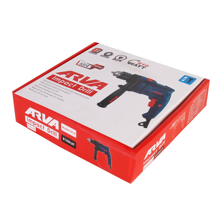 دریل برقی آروا ۵۳۱۴ دارای موتور قدرتمند با توان ۸۱۰ و سرعت بی باری آن ۳۰۰۰ دور بر دقیقه است. سایز سه نظام آن ۱۳ میلیمتر و نوع آن آچاری است؛ که به کمک آن می توانیم در اندازه ها و قطر های دلخواه، کار سوراخکاری را انجام دهیم.